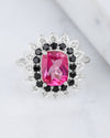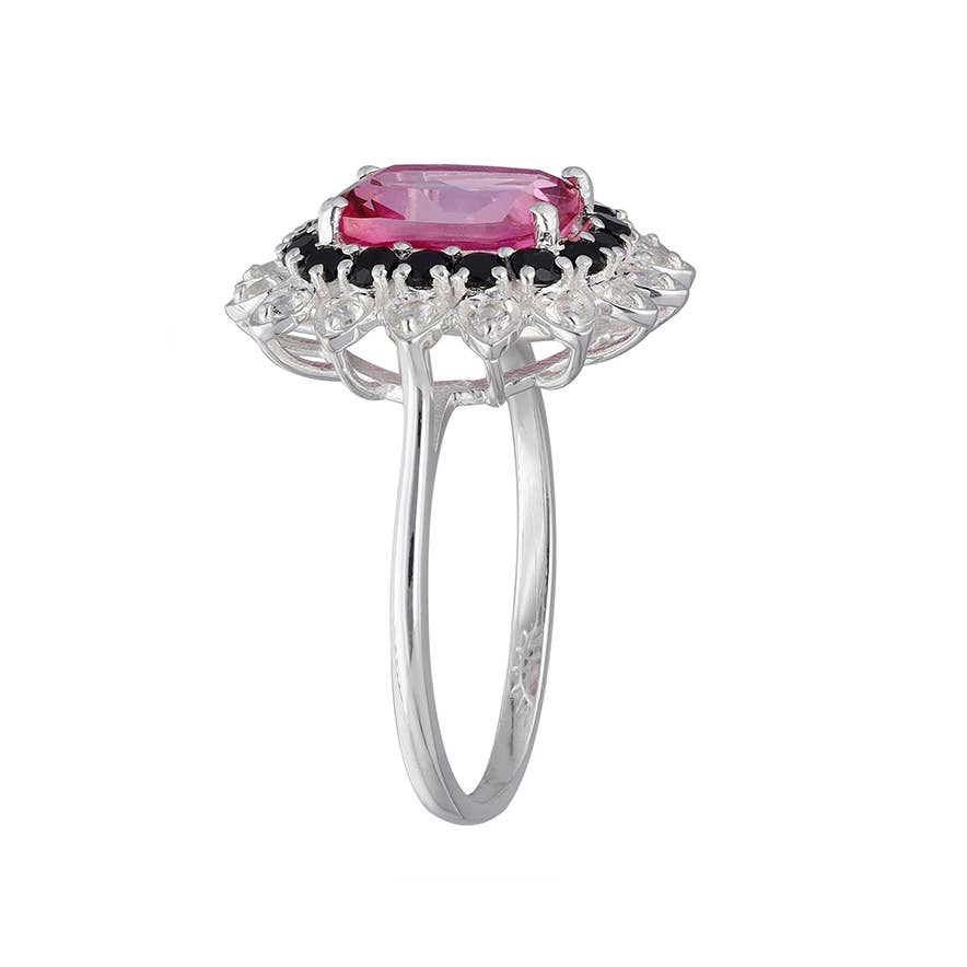 925 Silver Pink Topaz Cluster Stones Cocktail Ring