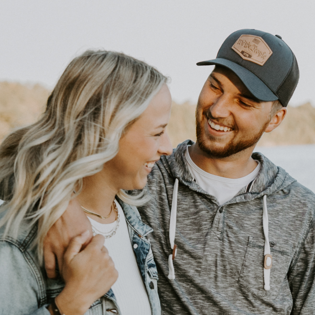We The People Hat | Leather Patch Trucker Hat